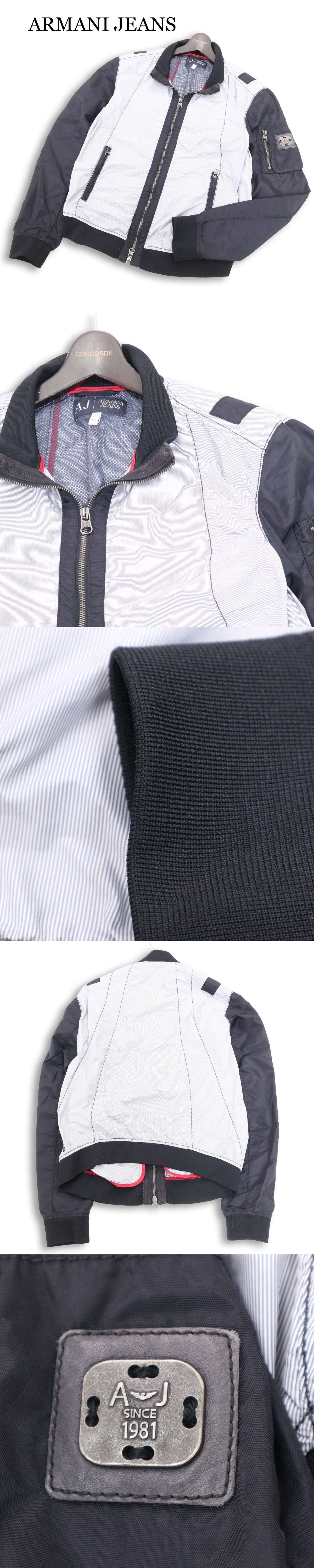 ARMANI JEANS アルマーニ ジーンズ 通年 ストライプ切替★ ボンバー フライト ジャケット ブルゾン Sz.S メンズ ネイビー 收藏