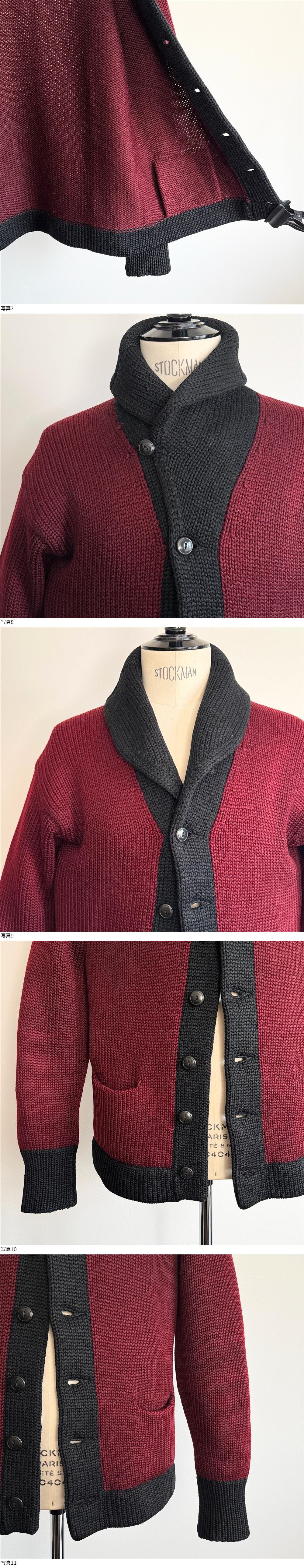 希少《 Good Condition 》30s 40s 美品【 ビンテージ ボルドー ブラック 黒 ショールカラー ローゲージ ウール カーディガン 】 收藏