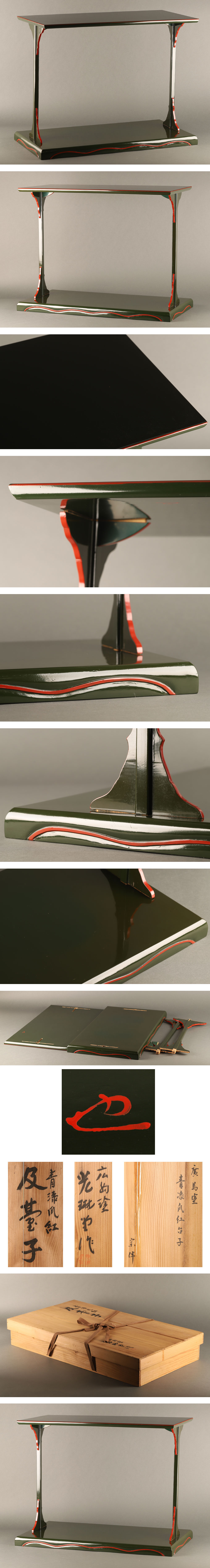 【流】光琳堂 青漆瓜紅 及台子 永田宗伴書付 花押 共箱 HD926◎ 收藏