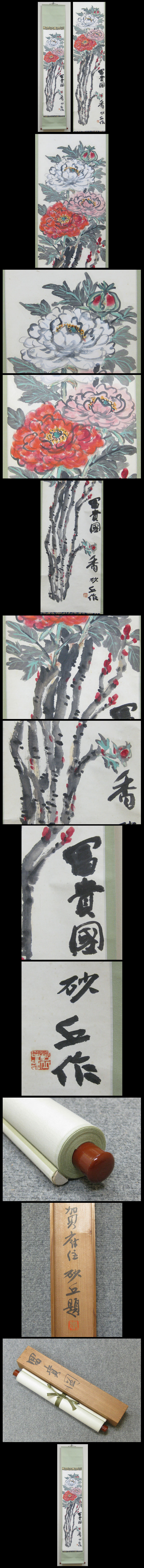 【心庵】掛軸 小松砂丘 紙本「冨貴図」/肉筆 共箱 真作 石川県 俳人 俳画家 B1106 收藏