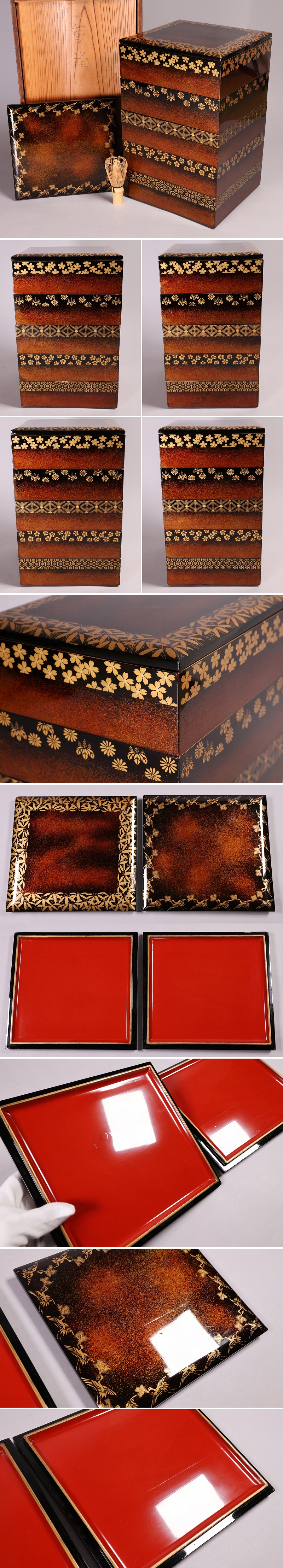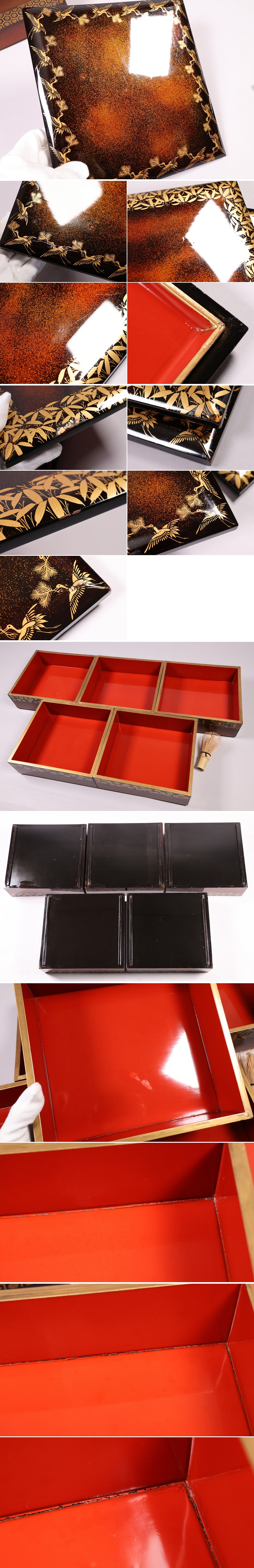 時代漆芸 絵変金蒔絵 五段重箱 蓋二枚