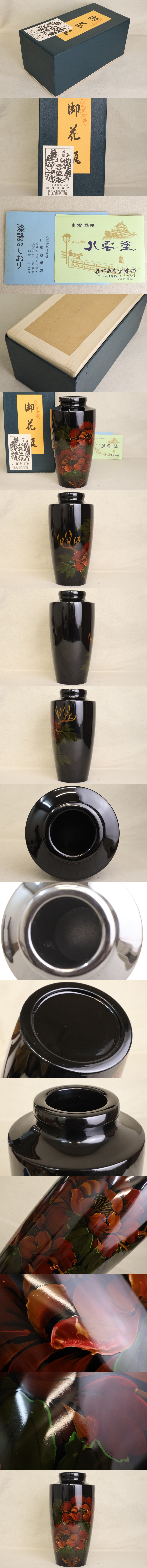 TB526八雲塗 花瓶 箱付◇山根漆器店/高さ約27cm/牡丹/島根県松江市/漆塗/透漆/漆器/漆芸/床飾/漆工芸/時代/骨董/古美術/古道具タグボート 收藏