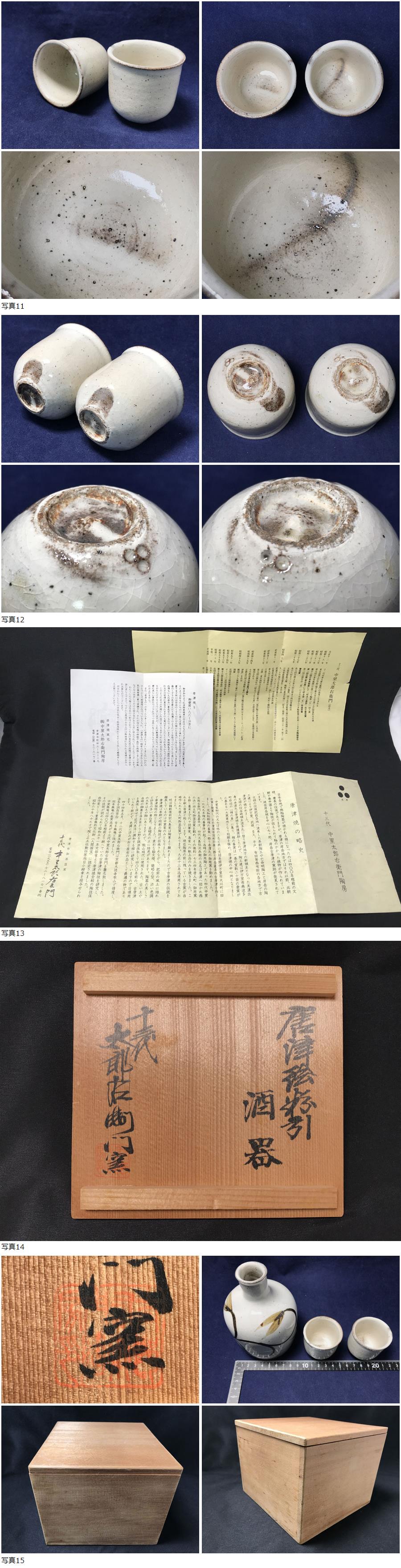 ◆未使用! 唐津絵粉引 酒器 十三代 中里太郎右衛門 御猪口 徳利 酒器揃 唐津焼 絵唐津 唐草文 栞・共箱付 收藏