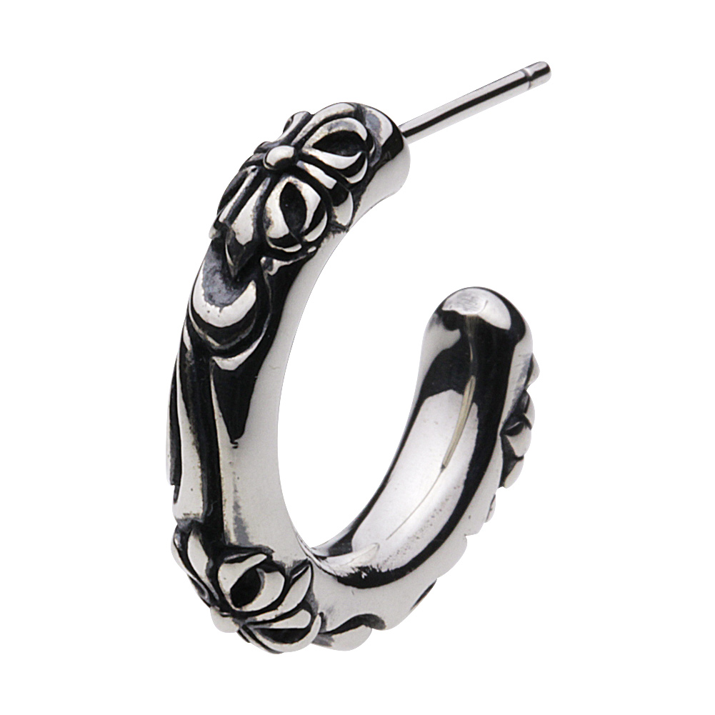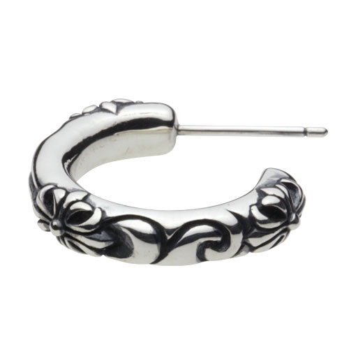 シルバーピアス メンズ ゴシック クロス 十字架 アラベスク 唐草 フープ形状 シルバー925 キャッチ付き シルバーアクセサリー e0371 收藏