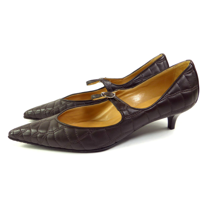 | ポインテッドトゥのつま先が細くとがったシャープなフォルムでスタイリッシュな印象を受けるエルメスのレザーパンプス。 ふっくらと優しい質感のレザーにステッチ仕上げ、甲部分のストラップがエレガントなパンプスです。 上品で落ち着いた女性の雰囲気を演出する大人フェミニンルックが完成し、モード感漂うコーデを足元から仕上げてくれる一足です。 |
