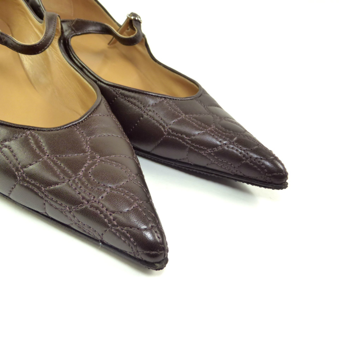 | エルメス(HERMES) レザー ステッチ ポインテッドトゥ パンプス 靴 #38 1/2 ブラウン(中古) |