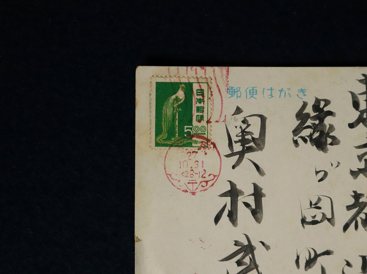 12711■【真作】谷崎潤一郎 直筆葉書 昭和27年消印 奥村武雄宛 小説家 耽美派 文豪 痴人の愛 エンタイヤ 收藏