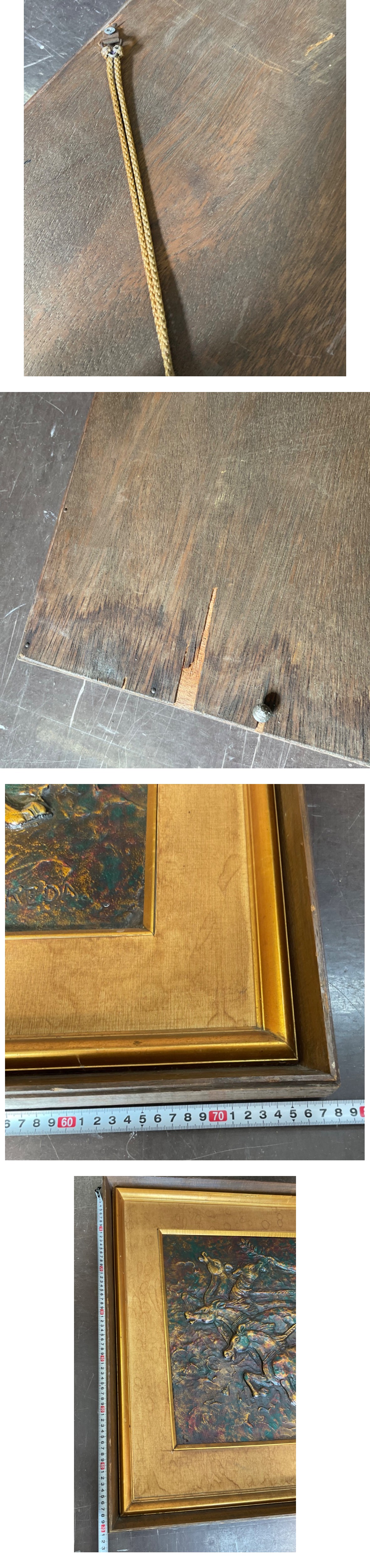 S3 銅版レリーフ レリーフ 銅製 古代 額装 壁掛け 金属工芸 彫刻 IKEDA 刻印 インテリア 收藏