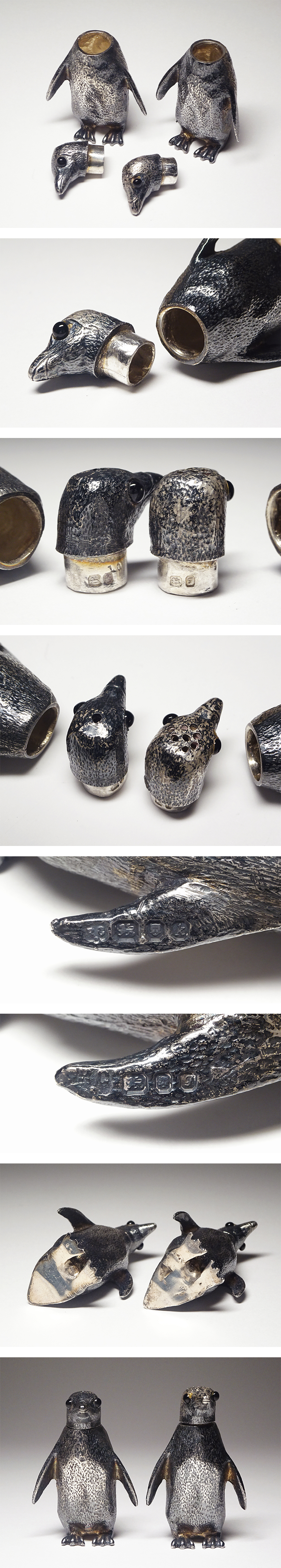 慶應◆1962・65年 英国ロンドン【Richard Comyns リチャード・コミンズ】製 スターリングシルバー(SILVER925)ペンギン型ソルト&ペッパー 收藏