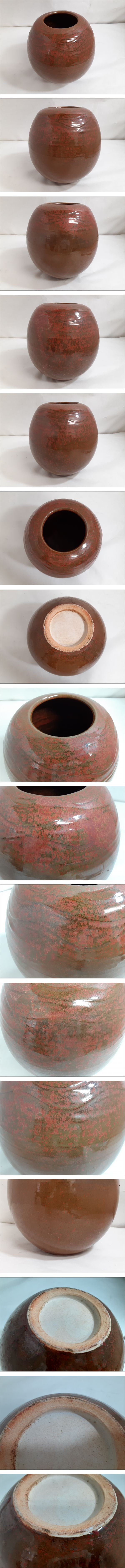 【うぶだし】陶器製 丸花瓶/茶道具/花器/花びん/かびん/茶花/花生/花入/約21×21×30cm/重量約4kg/床飾り/床の間飾り/8-RSH64 收藏
