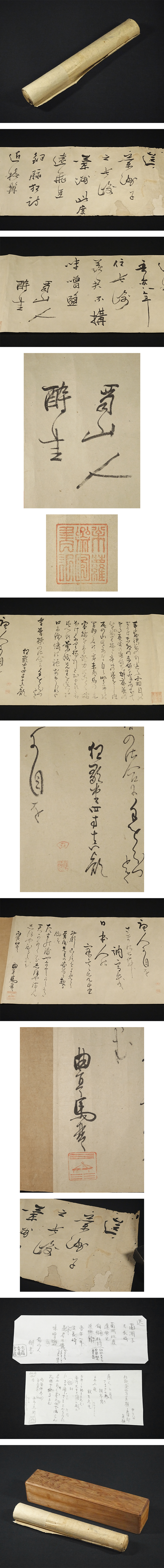 慶應◆【大田南畝・鹿津部真顔・曲亭馬琴】真筆 紙本墨蹟 山崎蘭洲への送状 巻物 時代箱 收藏
