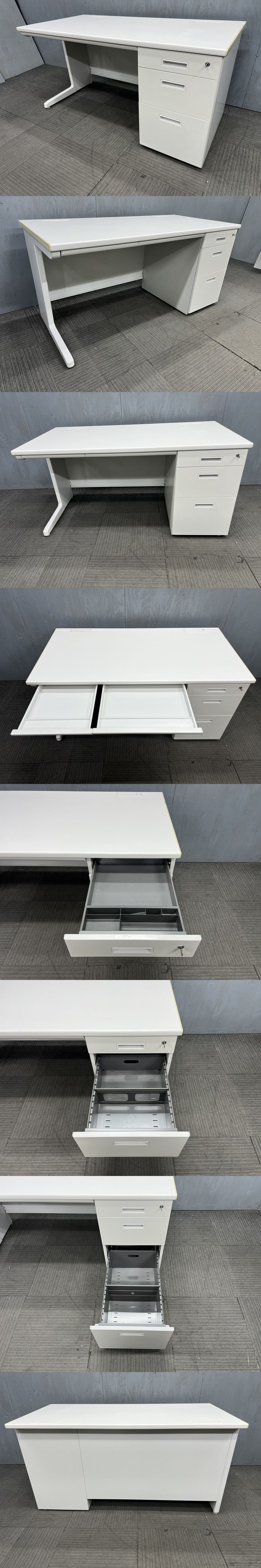 ◆管1944◆自社便対応地域あり◆トヨスチール製◆片袖机 幅1400mm 鍵付き◆オフィス 事務机◆天板 白 ホワイト系 收藏