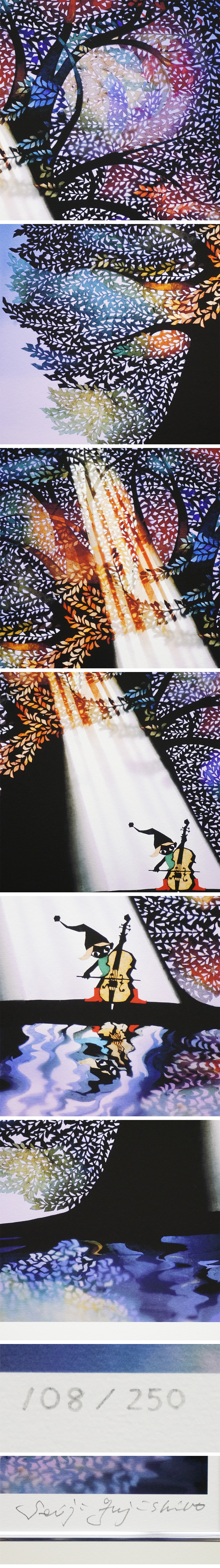 藤城清治『月光の響』108/250 ジクレー 版画 額装 アート 美術品 絵画 肉筆サイン有 真作保証品 收藏