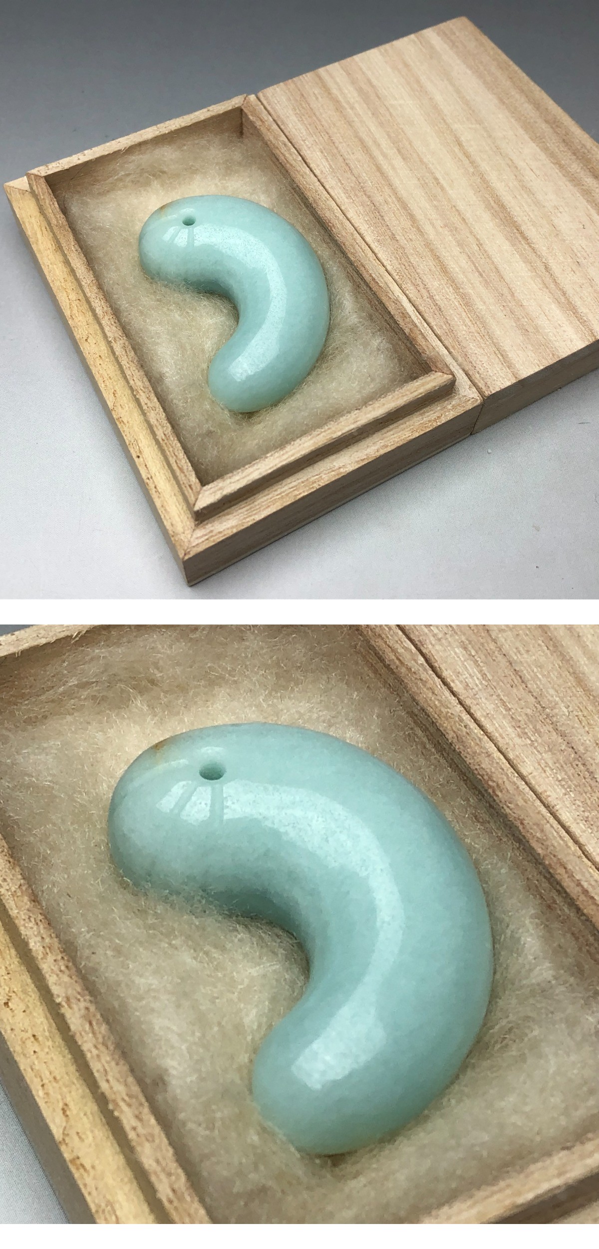 翡翠製 土偶 勾玉 弥生縄文古墳須恵器根付 重さ23g ケース付き 收藏