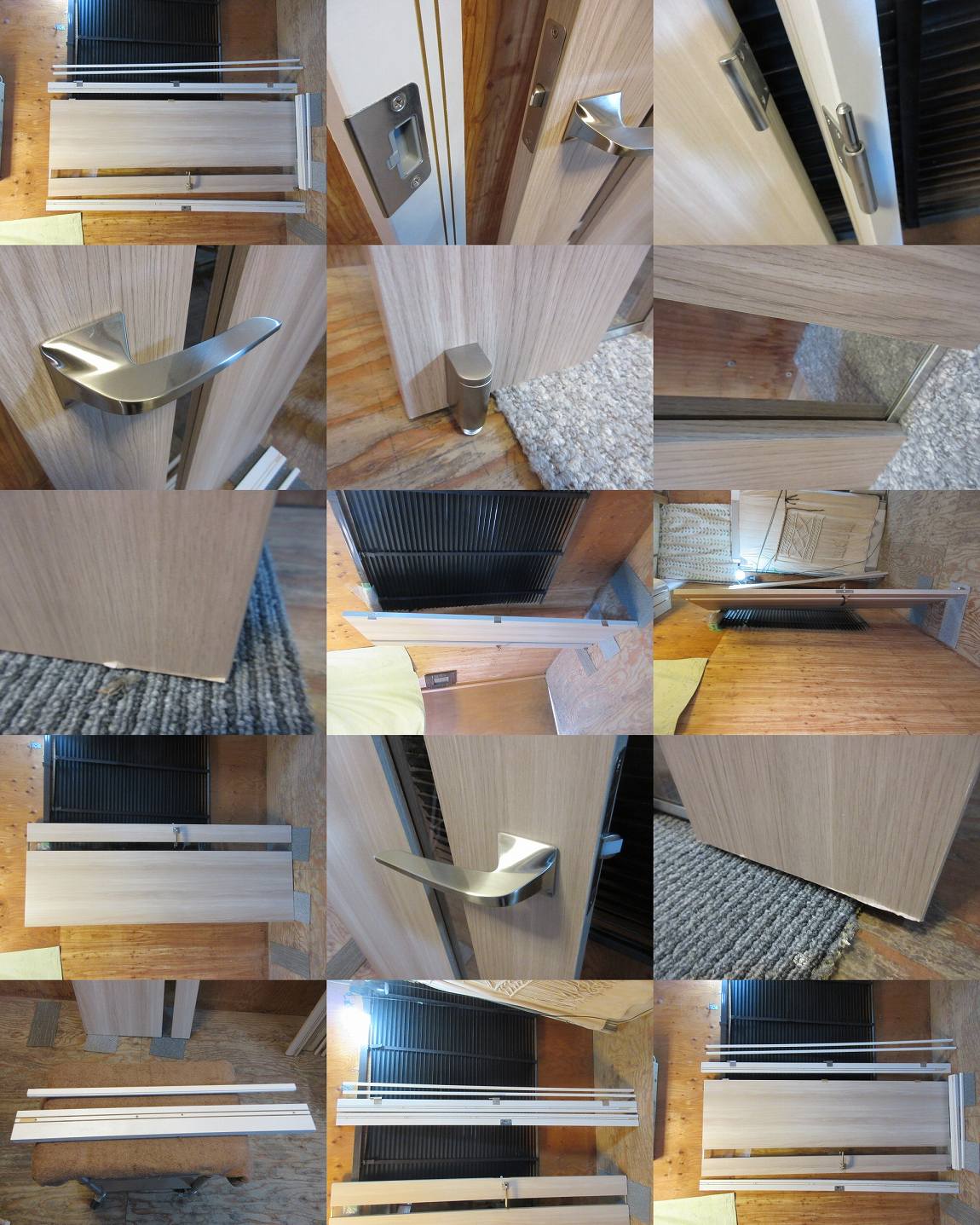 D1595●内装ドア■ベージュ■木目調■右開き■ガラスあり■ドアストッパー付■枠あり■展示品未使用 收藏