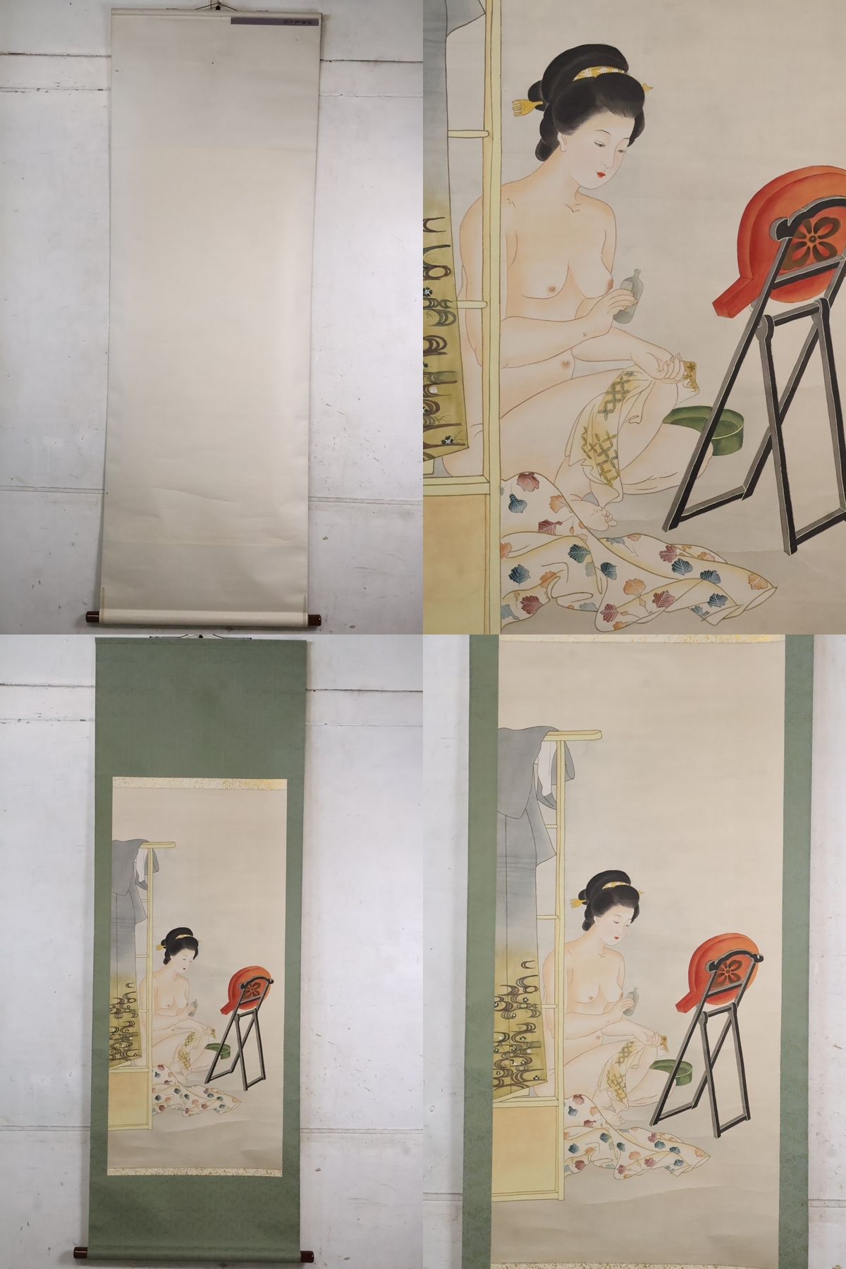 TB526上村松園 浴後美人図 複製画 掛軸 絹本 箱付◇日本画/美人画/彩色/色絵/床掛/掛物/掛飾/床の間飾/工芸/インテリア/古道具タグボート 收藏