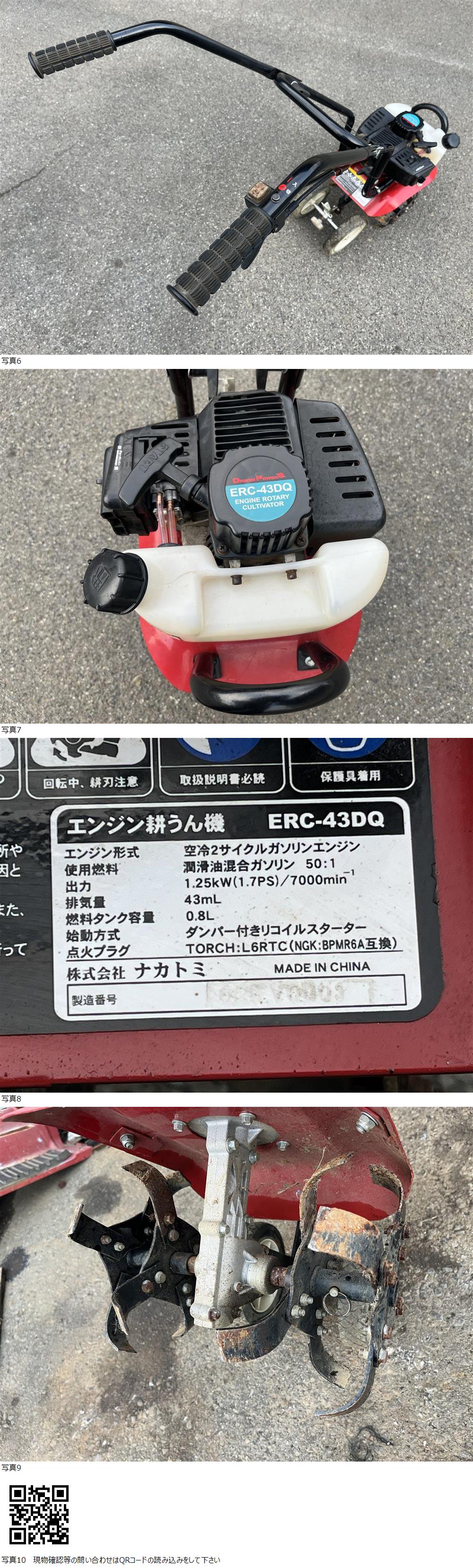現物確認歓迎 初期不良対応OK 整備済 家庭菜園向 かけやすく 折り畳め片手で持てる 2サイクル 1.7馬力 耕運機 ナカトミ ERC-43DQ 收藏