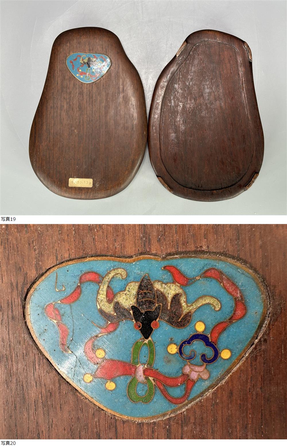 U15S65 中国美術 書道具 文房具 古硯 瓜形端渓硯 老坑 景泰藍付唐木共箱 唐物 古物保証 時代物 收藏