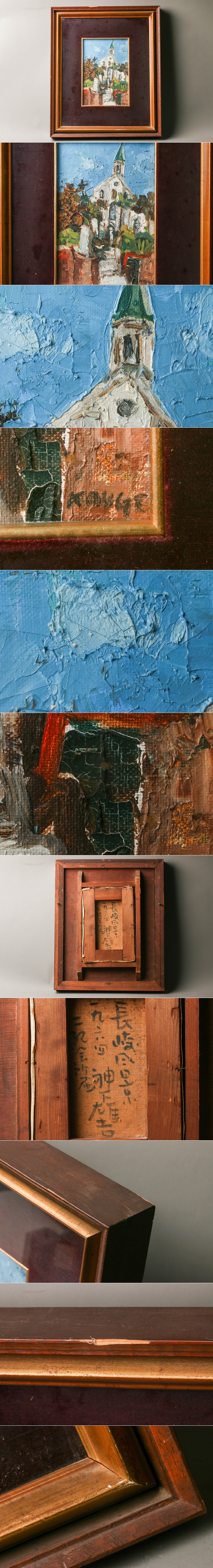 【SAG】神下雄吉 『長崎風景』油彩 キャンバス 肉筆 直筆サイン 額装 本物保証 收藏