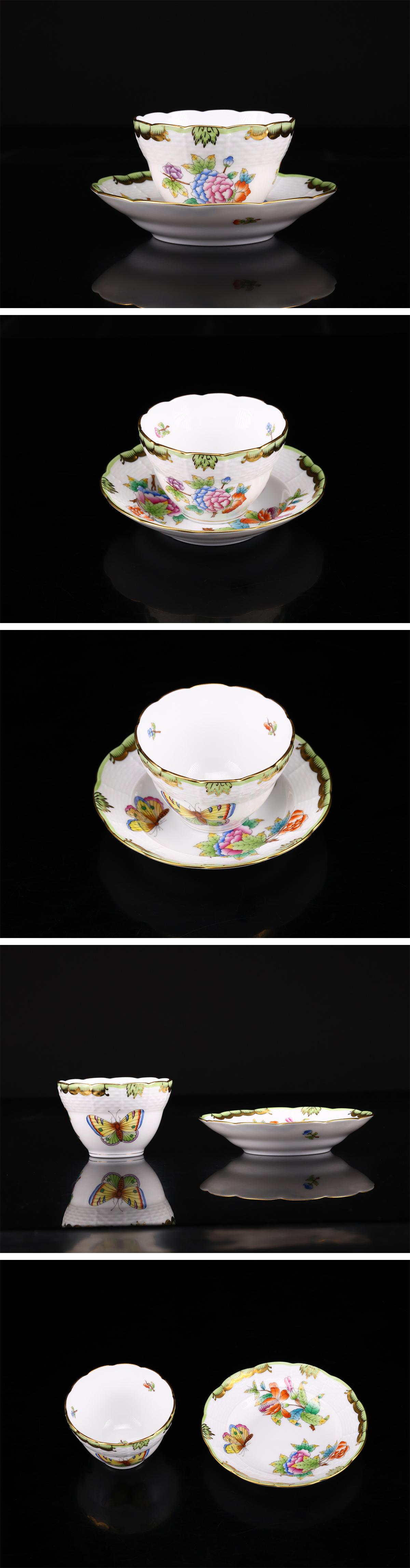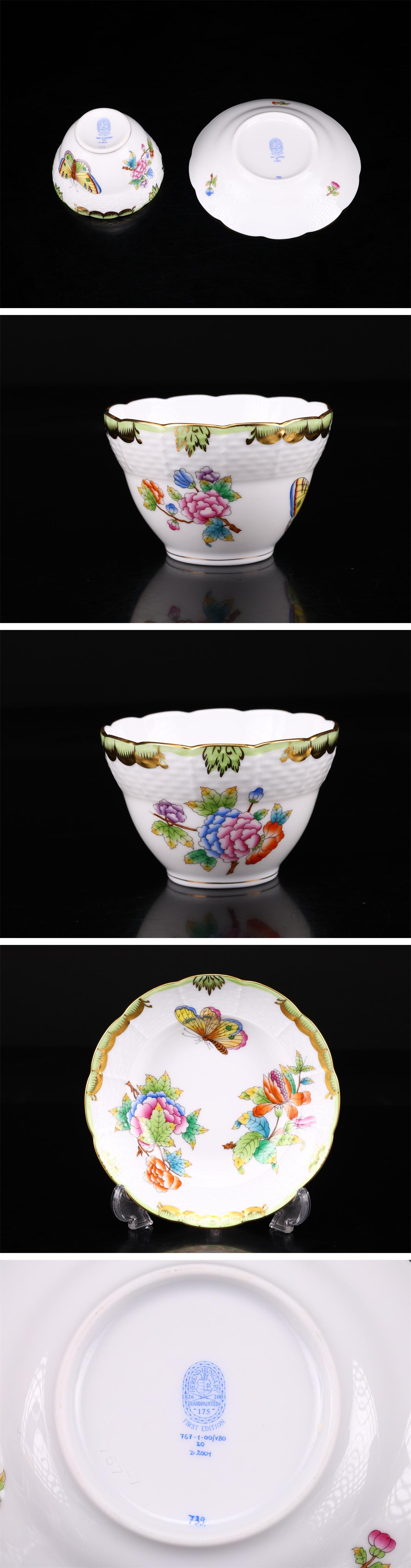 【吉】CQ547 Herend 【ヘレンド】 ヴィクトリアブーケ 花蝶文 湯呑 受皿 2点セット/美品g! 收藏