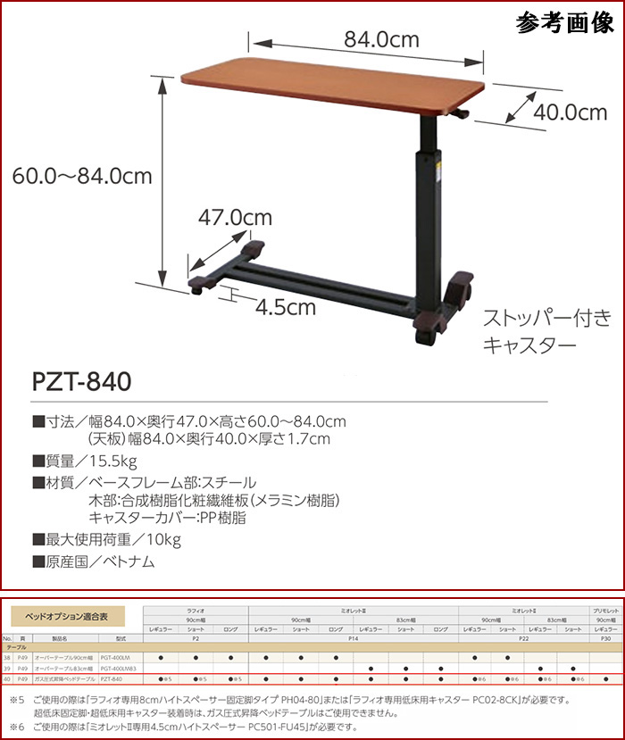 | ガス圧式昇降ベッドテーブル PZT-840 取扱説明書 |