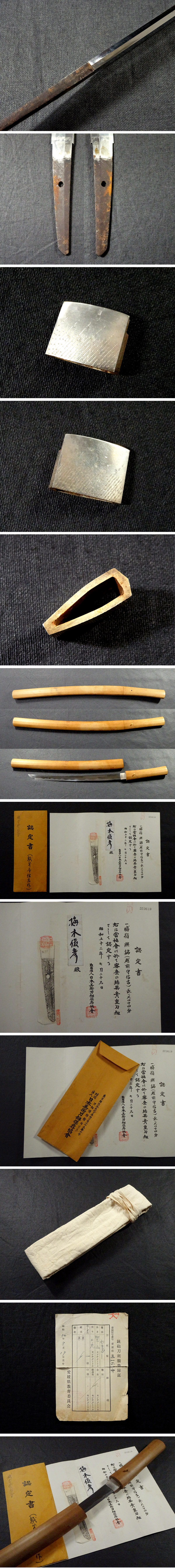 敬逢 秀逸 刀剣 貴重刀剣認定書 無銘 越前守信吉 日本刀 脇差 わきざし 互の目丁子刃文 白鞘 銀無垢はばき 刀袋付 登録証 94 收藏