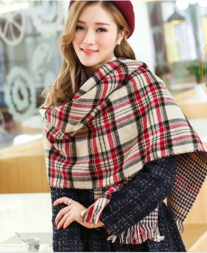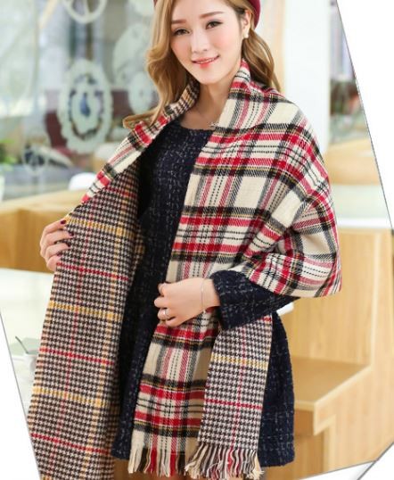 レディース 秋冬 大判 格子柄リバーシブル ストール 收藏
