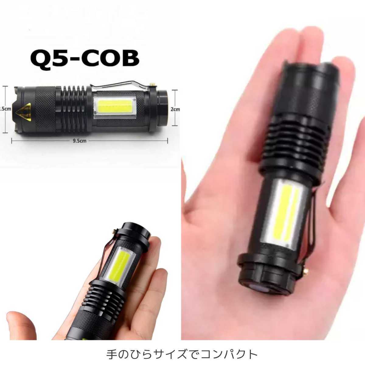 【送料無料】USB充電式懐中電灯 XPE+COB LED ハンディライト ライト ズーム機能 リチウムイオン電池付き 釣り 登山 自転車 BBQ キャンプ