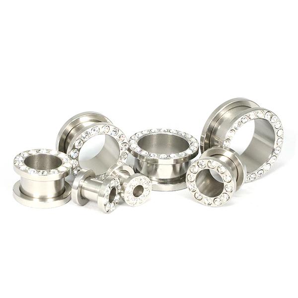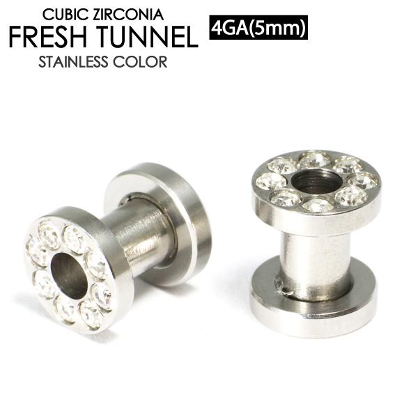 フレッシュ トンネル ラインストーン仕様 4G(5mm) サージカルステンレス316L ボディーピアス ジュエル付 ゴージャス イヤーロブ 4ゲージ