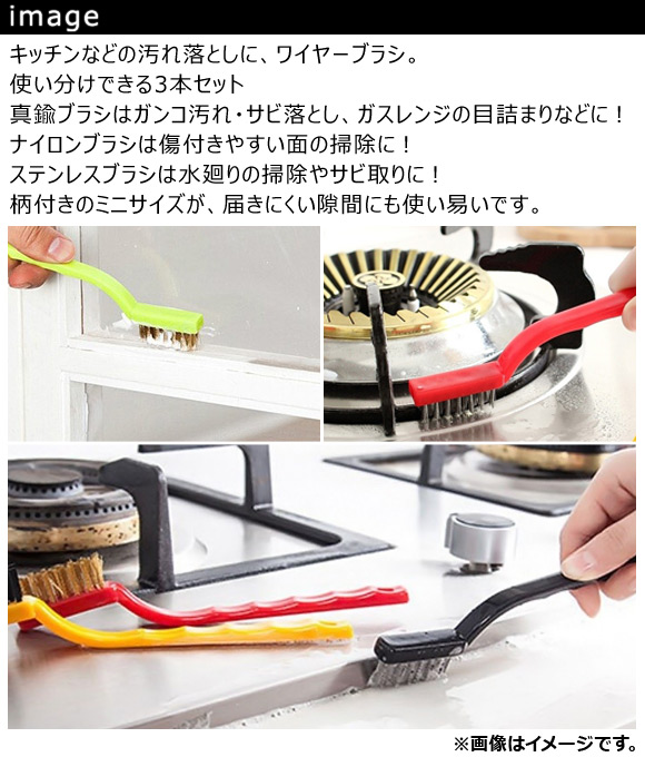 AP キッチン ワイヤーブラシ 真鍮・ナイロン・ステンレス 使い分けできる3本セット ガンコ汚れを除去! AP-TH883 入数:1セット(3本) 收藏