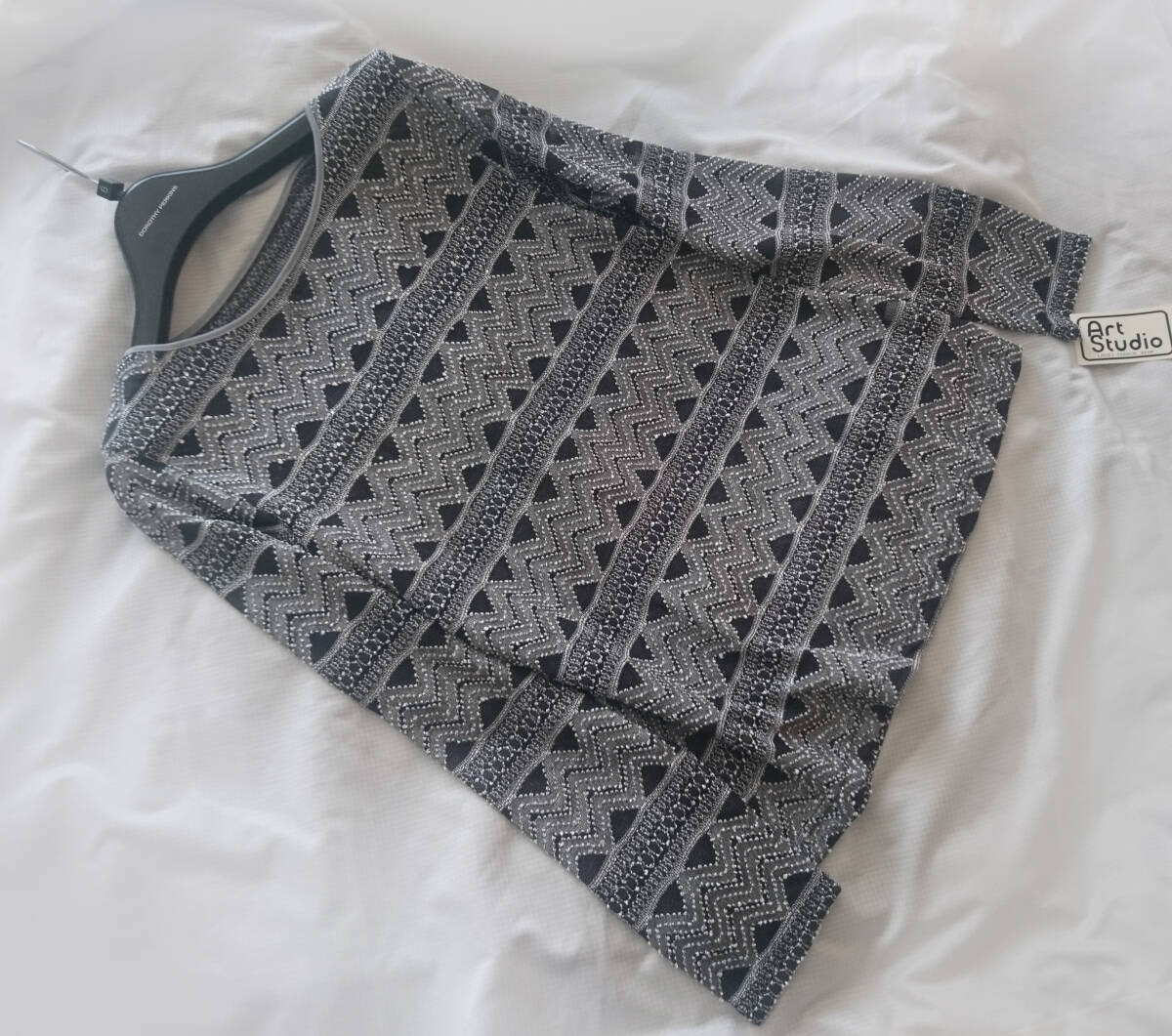 上品な光沢感 シルバーグレー ブラック トップス プルオーバー フリーサイズ /レース 伸縮性あり ニット 透け感 大人 マダム 高級感 收藏