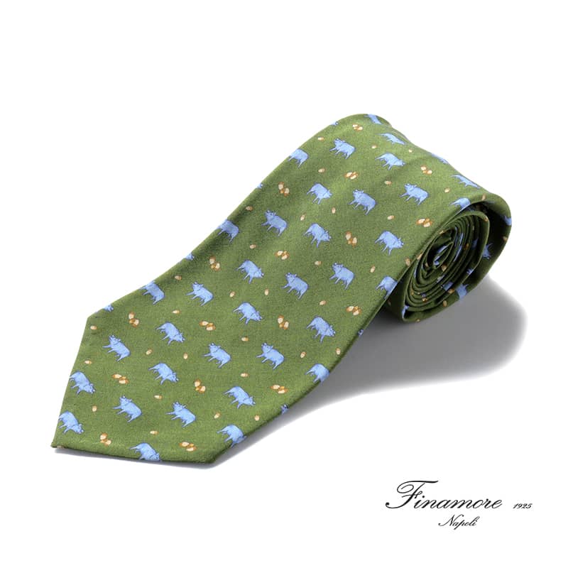 ◆【FINAMORE(フィナモレ)/ピッグ&エイコーン柄プリントセッテピエゲスフォデラートシルクネクタイ(CHIAIA)】[fin1860791] 收藏