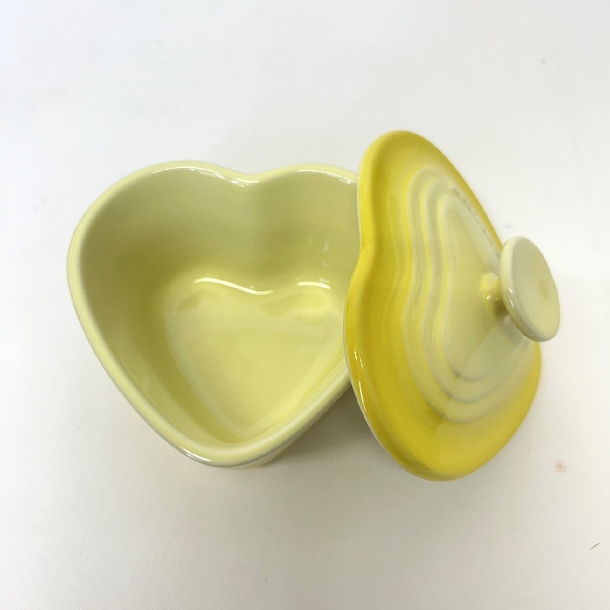 【86】【併売】未使用保管品 LE CREUSET ルクルーゼ ミニココット ハート ラムカン ダムール 食器 イエロー 黄色 箱付き 收藏