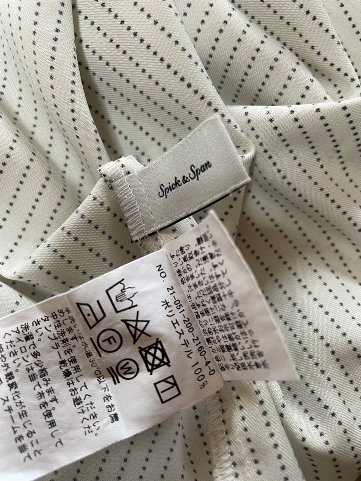 小さなドット柄をストライプ状にプリントし、キュっと絞ったアンブレラスリーブデザインをプラスし大人っぽい印象に仕上げました。