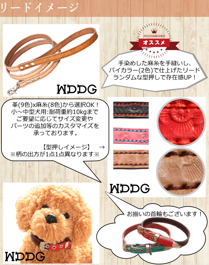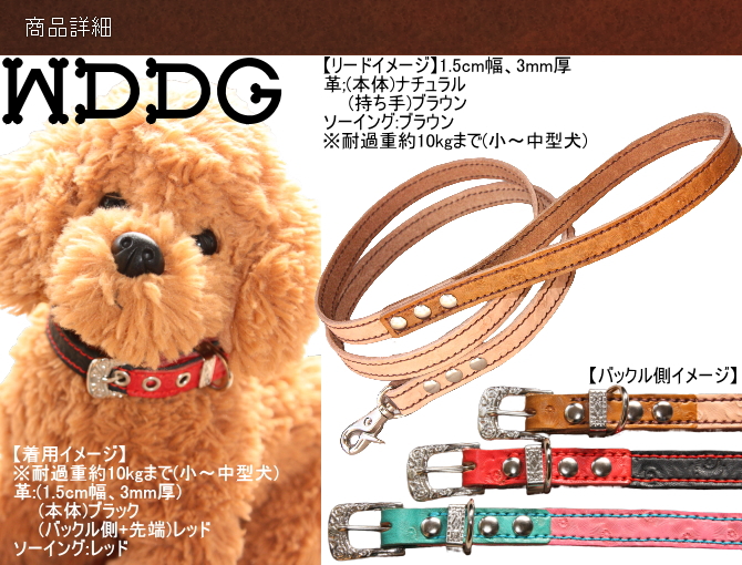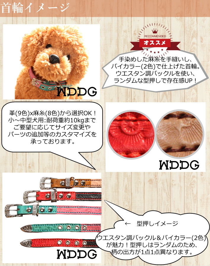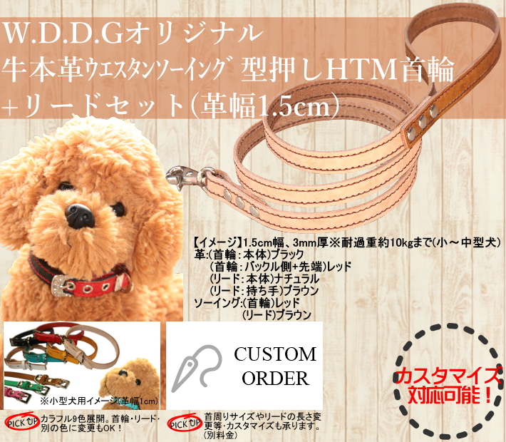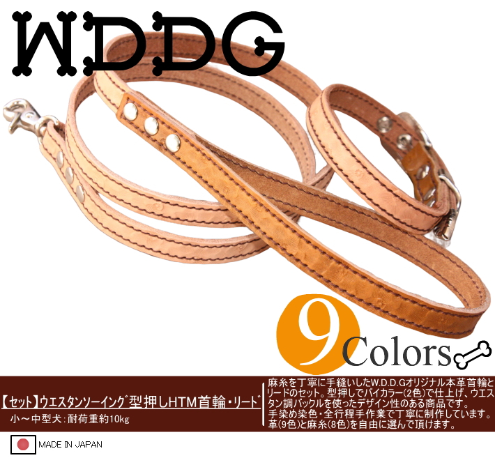 犬 革 首輪 リード セット 本革 ウエスタン ソーイング 型押し HTM リード 首輪セット 小型犬 ~ 中型犬 犬首輪 レザー 牛革/ 收藏
