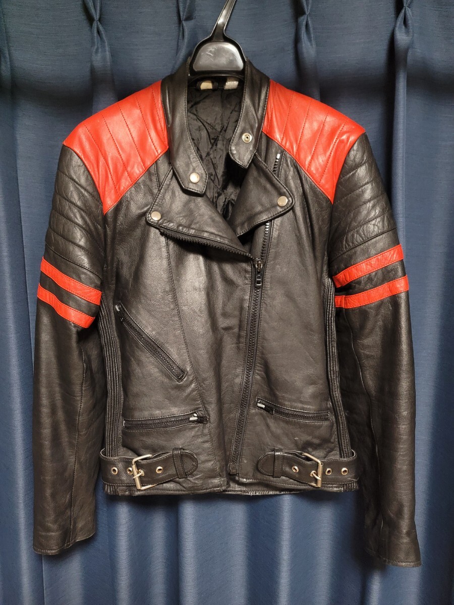 美麗シルエットセミダブルライダースジャケット黒赤size36 S相当 検索用ルイスレザーTTレザーモンツァサイクロンハイウェイマンSENSE 收藏