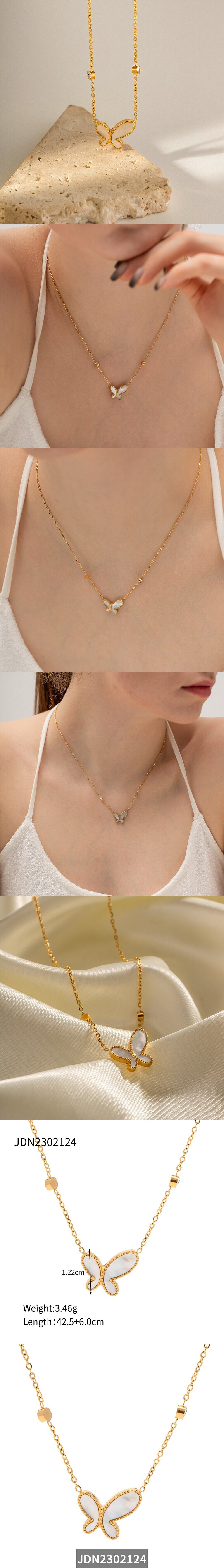 ペンダント ネックレス 蝶 バタフライ ジルコニア インセクト ゴールド シェル 昆虫 レディース 女性 防水 18k プレート 貝殻 收藏