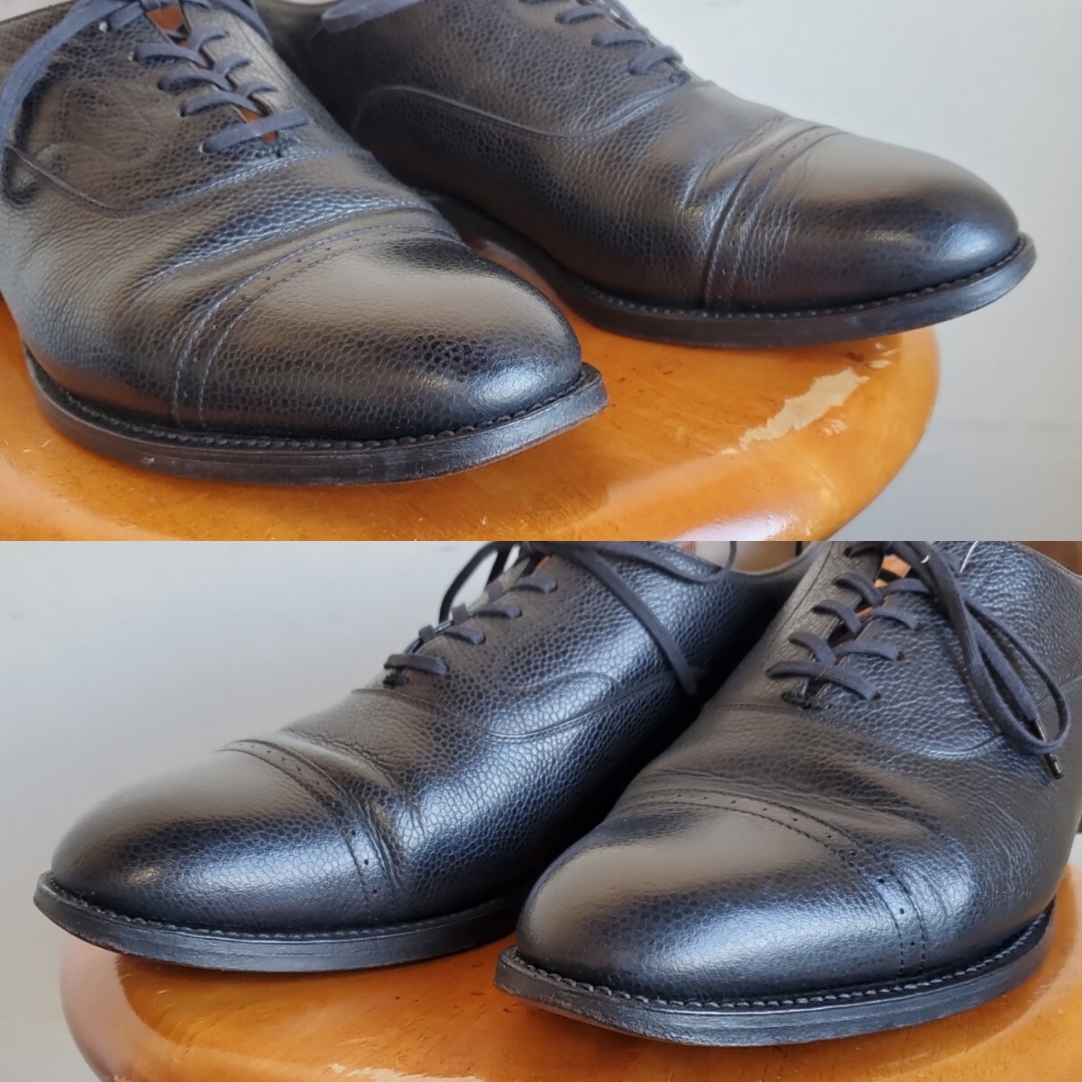 G4◆【25㎝】BARBICHE グレインレザー キャップトゥシューズ 黒 ブラック シボ革 レザー 本革 中古 USED