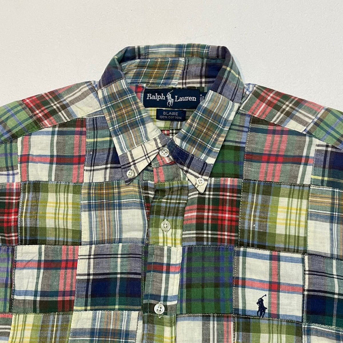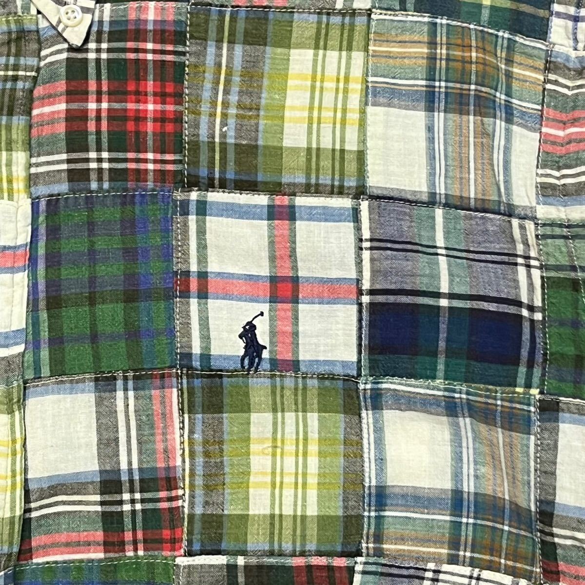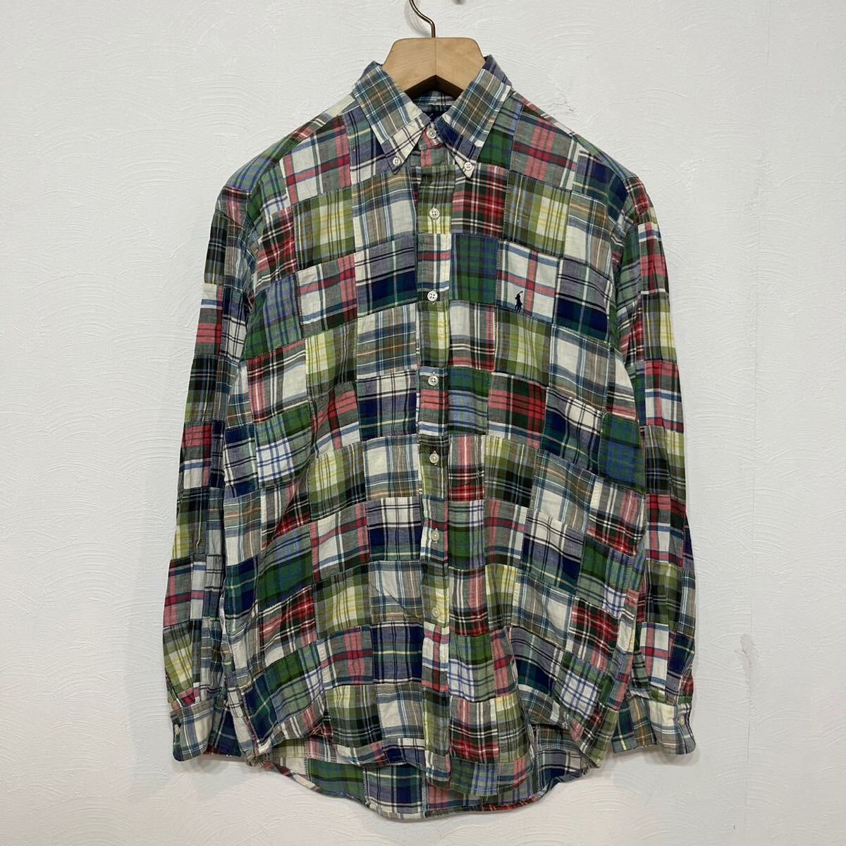 k317 90s Ralph Lauren BLAIRE patch work shirt パッチワーク チェック BD シャツ インド 製 M ラルフローレン 收藏