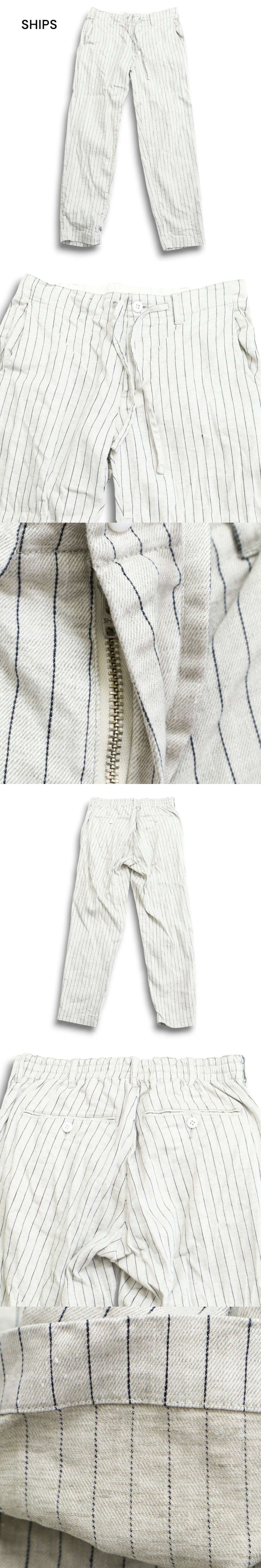 SHIPS シップス 春夏 safilin 麻 リネン★ ストライプ テーパード イージー スラックス パンツ Sz.S メンズ C5B01207_3#P 收藏