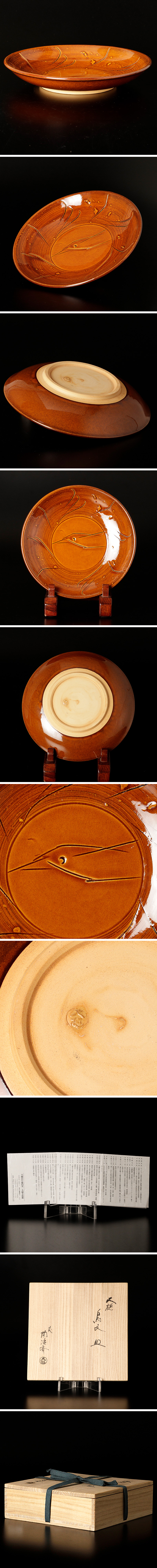 | 【古美味】十代大樋長左衛門(陶治斎) 大樋鳥文 皿 茶道具 保証品 |