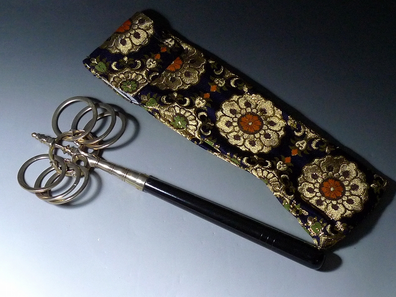 60MG05▲密教法具・錫杖/しゃくじょう・全長約33.5cm・専用金襴袋付・真言宗・仏具・法具・寺院・仏教・仏教美術@ 收藏