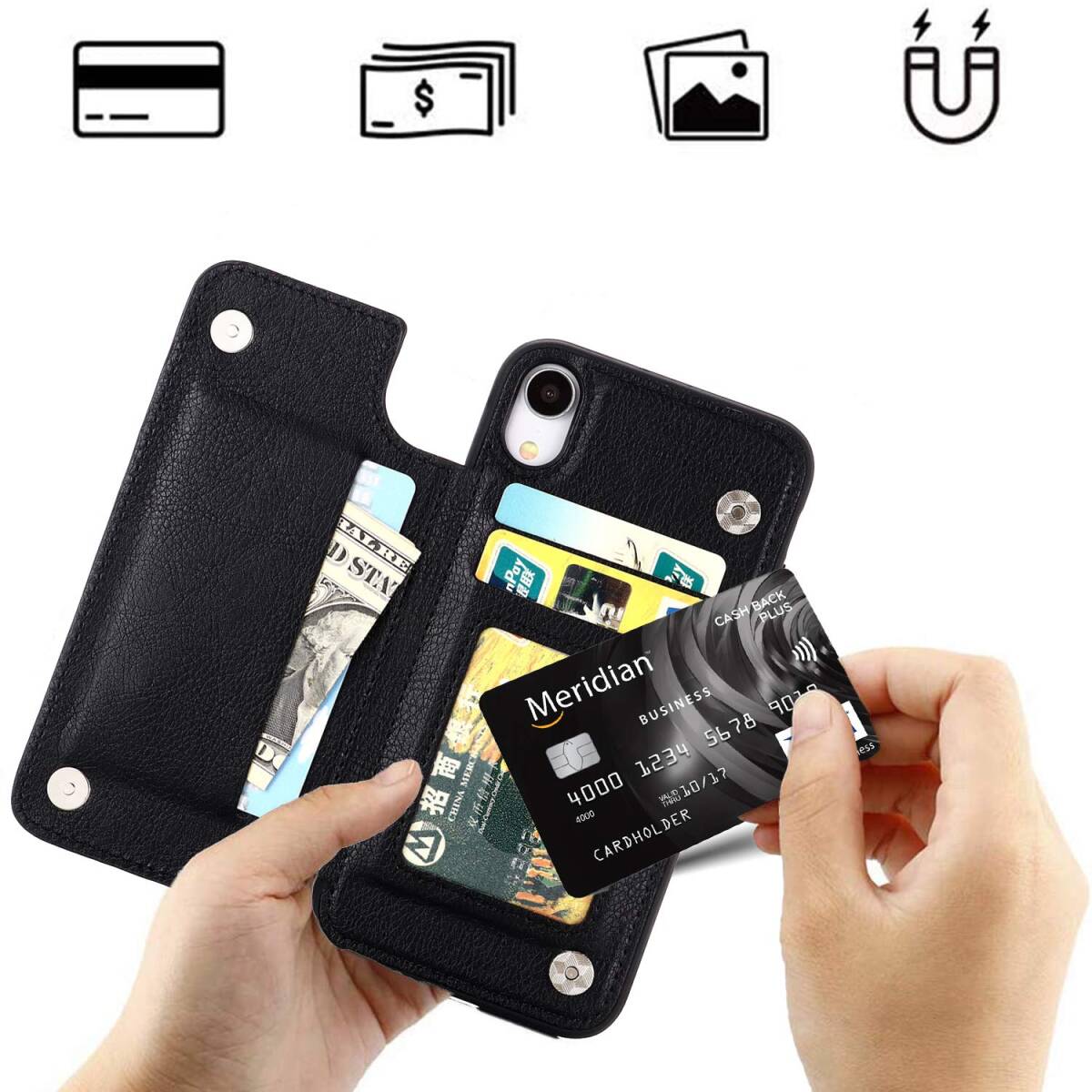 【 Viesa 】 背面カード 手帳型ケース iPhone X/iPhone Xs 5.8 inch (5.8インチ) 対応 APPLE スマホ バックカバー ケース 手帳型 (ブラック) 手作り 財布型 マグネット 薄 軽量 ポケット収納付き 背面カバー 手帳 横置きスタンド機能 背面型ケース アップル アイフォンxsマックス iphonexs BLACK