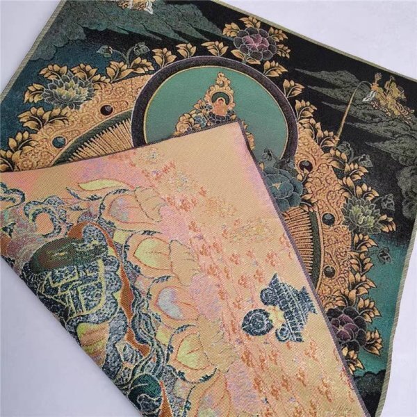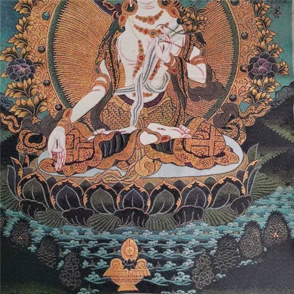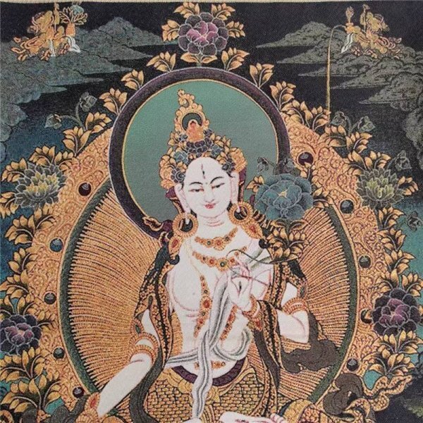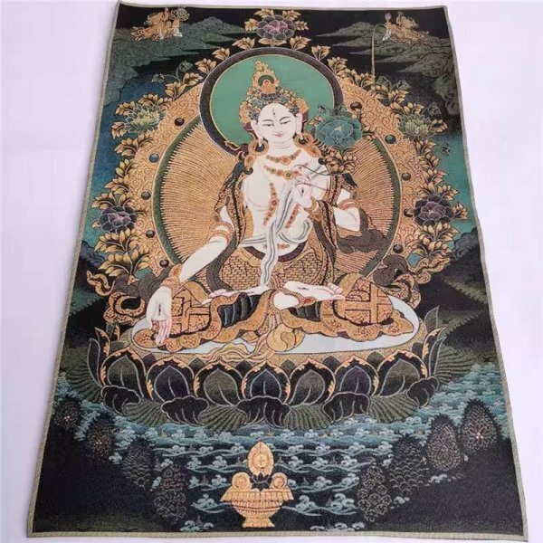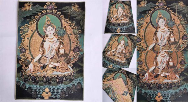 2025030910 3. 金竜古玩斎(店舗)絲紬刺繍 金絲織錦布 机繍 白度母図 錦織キャンバス絵画. 收藏