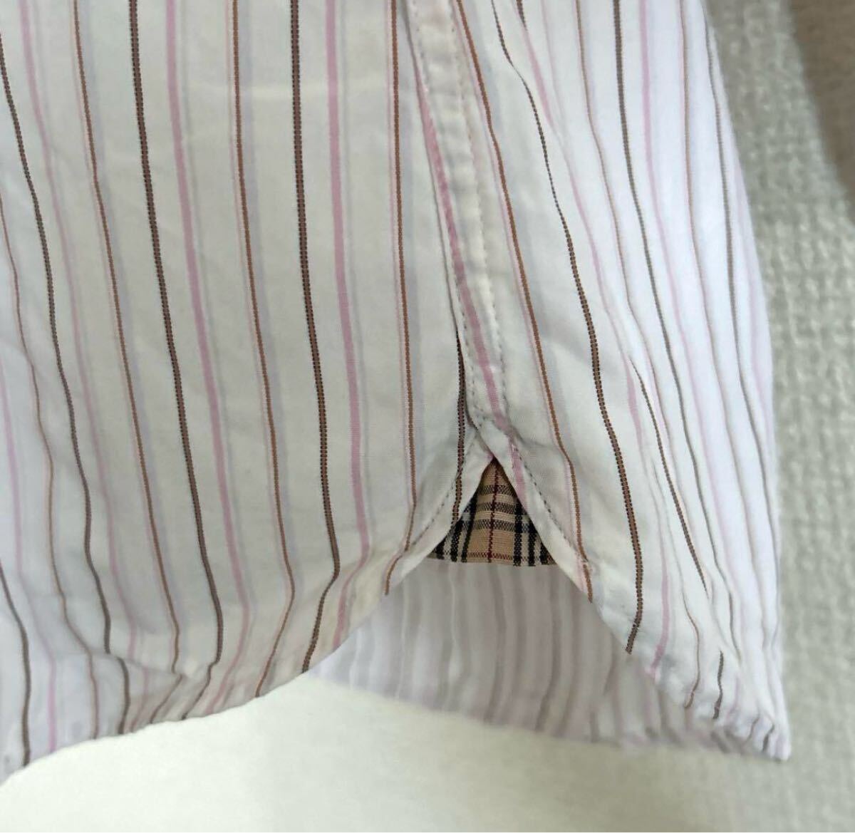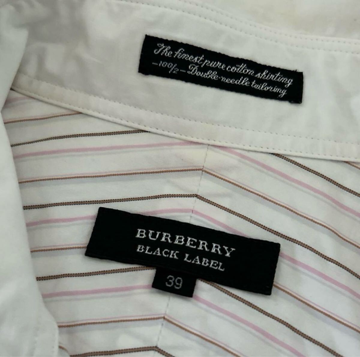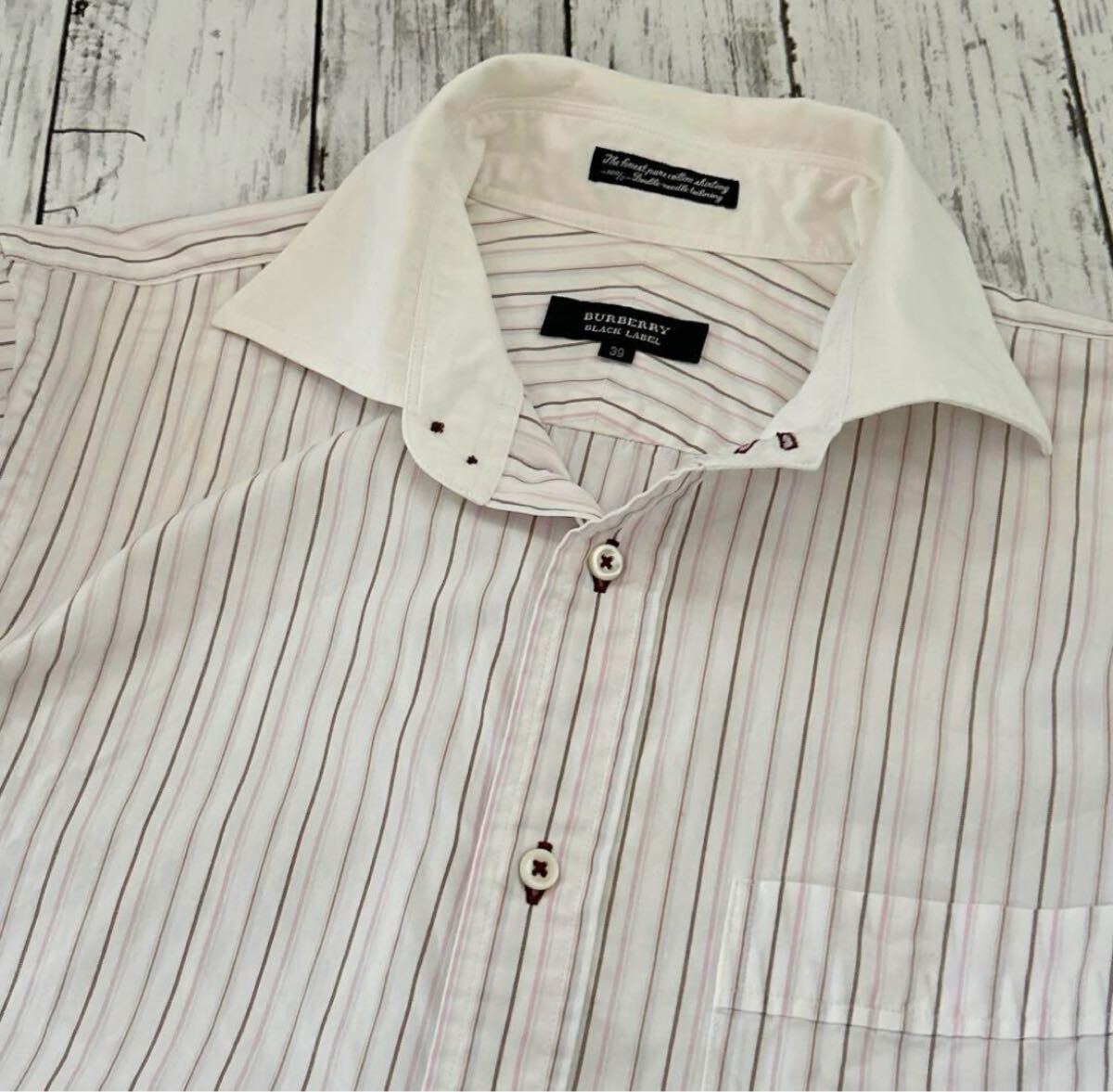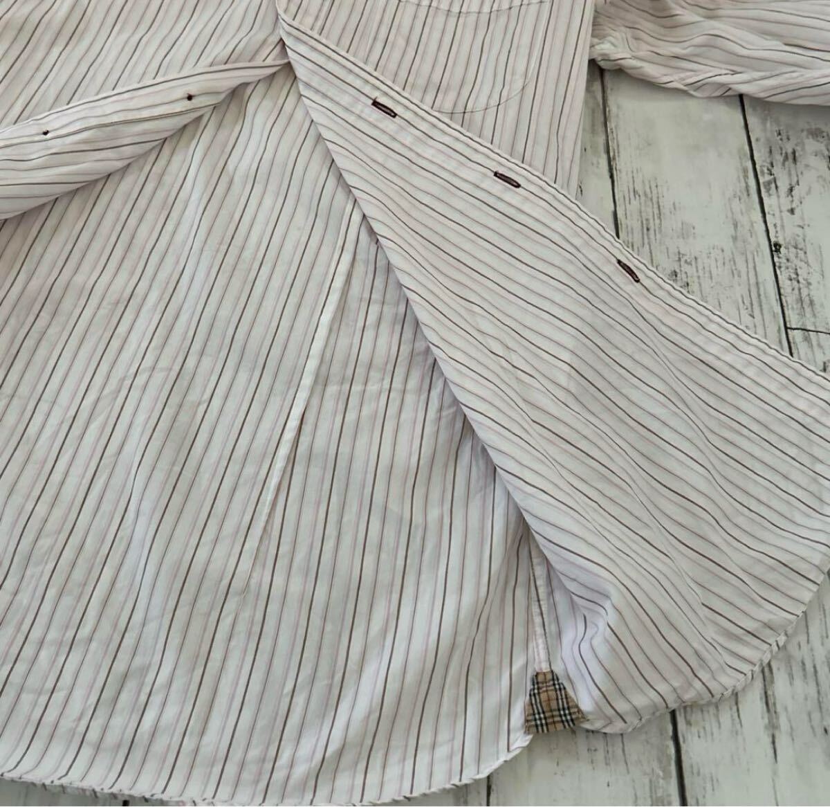 BURBERRY BLACK LABEL メンズ 38 ストライプシャツ ビジネス BMH66-083-12 三陽商会 ホワイト×ピンク系 (q77)★ 收藏