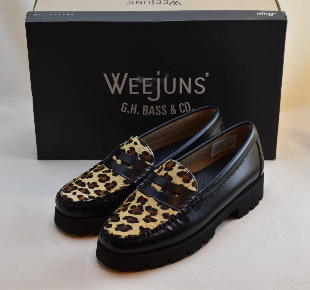 G.H BASS バス 軽量ラグソール仕様 レディス サドルローファー ブラックレザー×レオパード柄ファー US5.5 22.5-23cm相当 未使用品 收藏