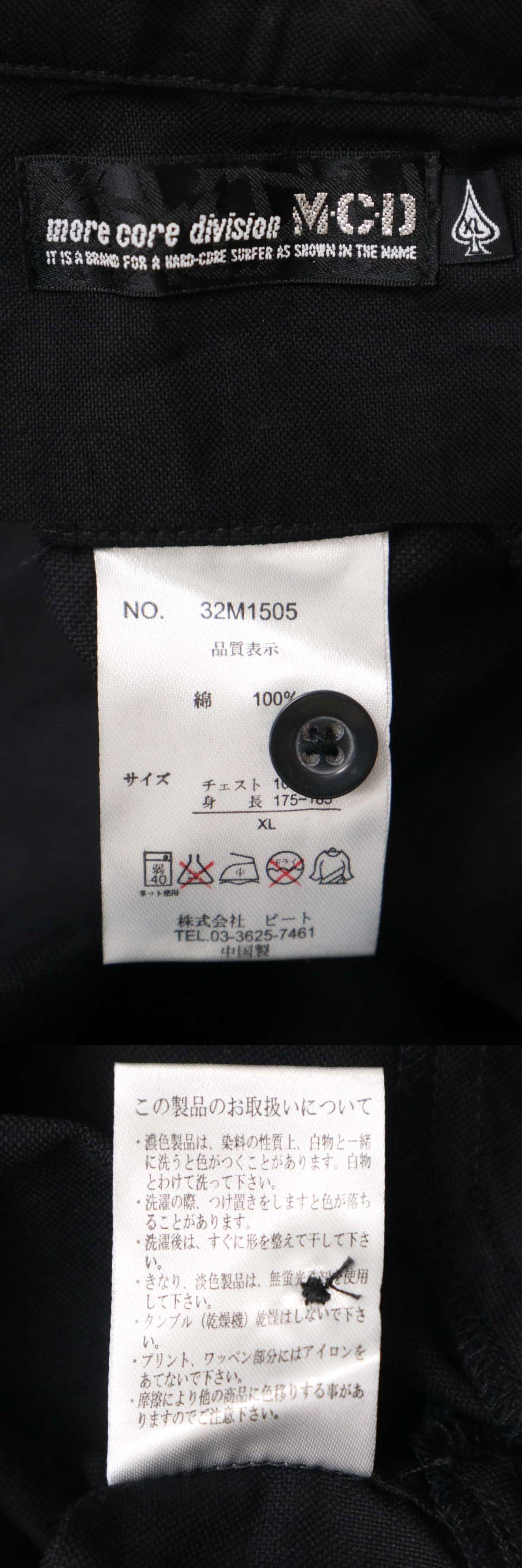 MCD more core division エムシーディー 春夏 バック刺繍★ 7分袖 シャツ Sz.XL メンズ 黒 大きいサイズ 收藏