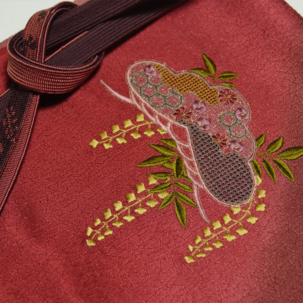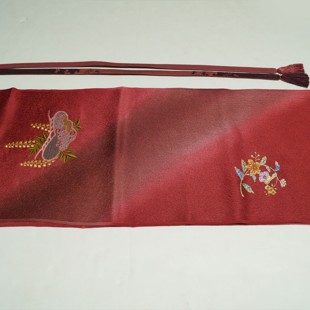 帯揚げ・帯締め 2点 セット スワトウ刺繍 ガーネット色系 松・藤 平組 刺繍 リサイクル品 中古 帯あげ おびあげ 帯〆 正絹 リサイクル着物 收藏
