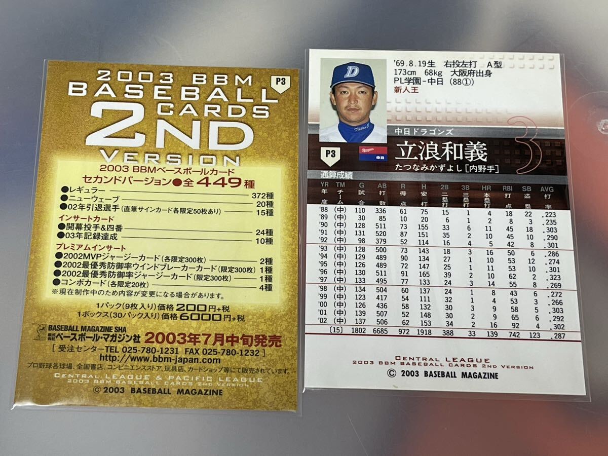BBM2003 2nd Version 中日ドラゴンズ レギュラー ライトパック プロモーション他 48枚カードセット 限定あり 川上憲伸立浪和義福留孝介 收藏