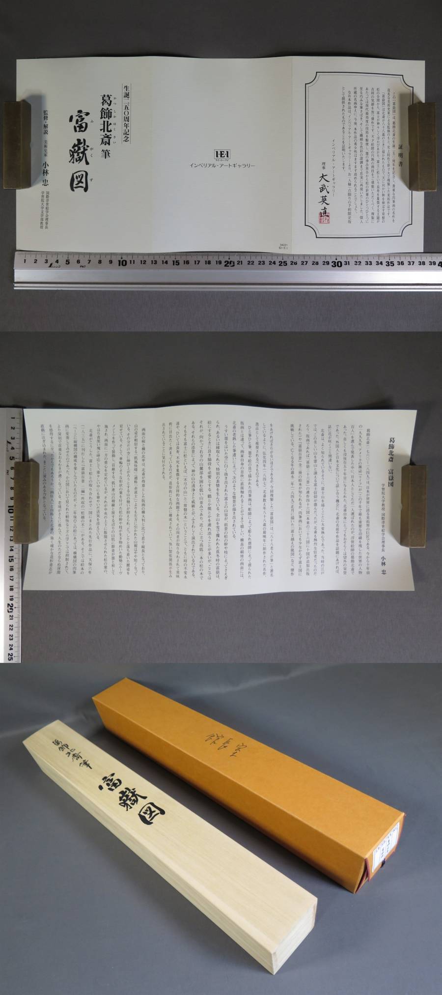 木箱、外箱、解説・証明書(写真に写っているもののみです。) ※定規、はかりは付属しません。大きさや重さの参考にしてください。 |